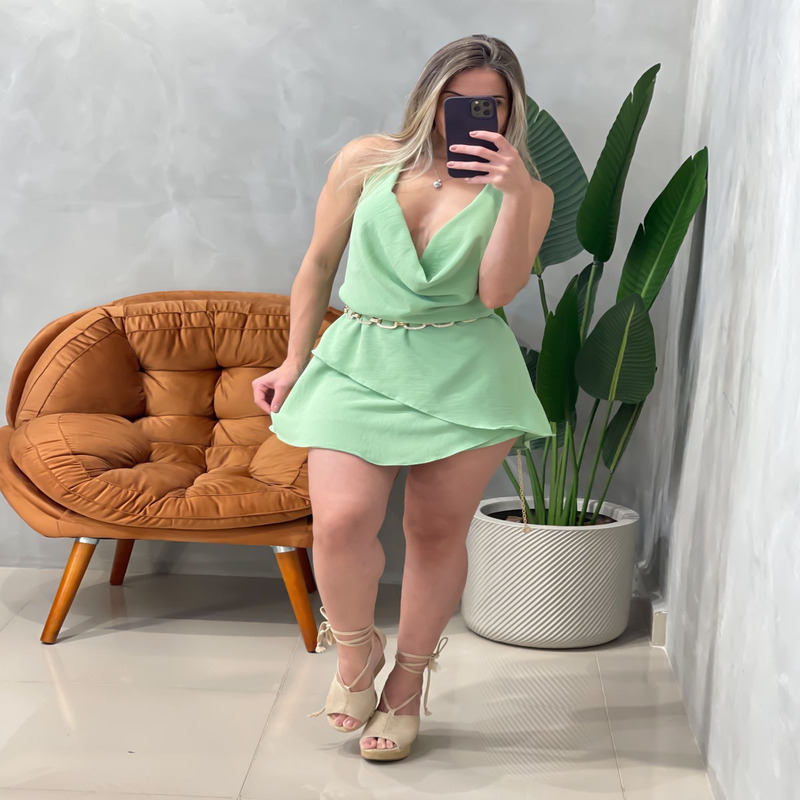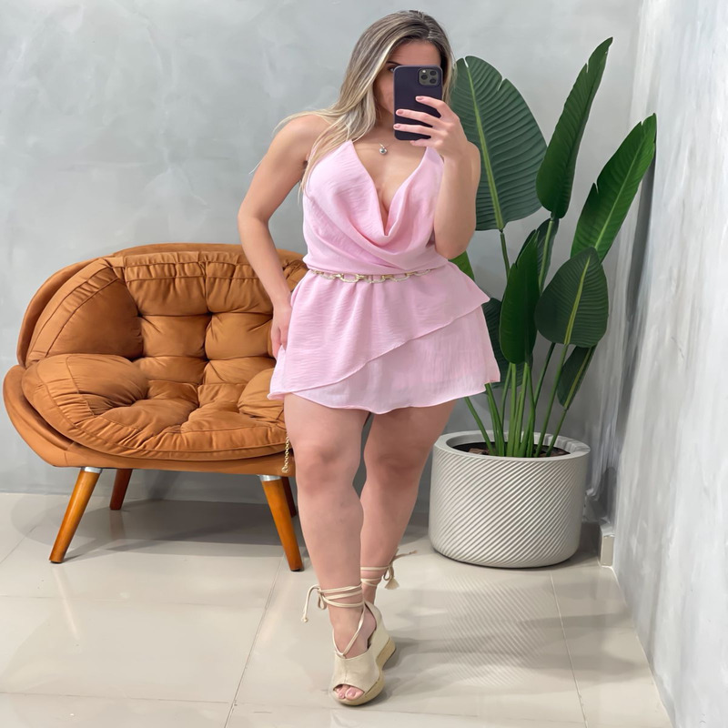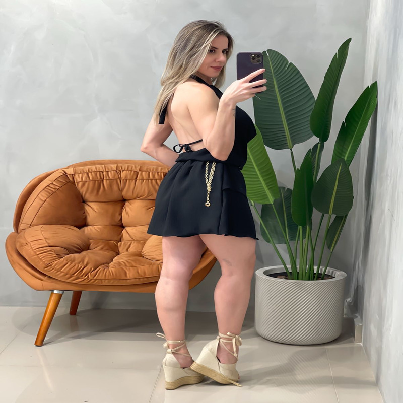 Com gola boba charmosa e decote nas costas nuas, este macaquinho garante um visual marcante e ao mesmo tempo delicado, perfeito para ocasiões especiais, passeios noturnos ou até mesmo para aquele encontro inesquecível. Seu design com amarração no pescoço dá o toque final de sensualidade e ajuste ideal para diferentes biotipos.